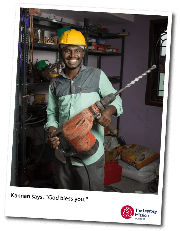 Kannan says, “To Australian donors I would like to say God bless you… Due to my mother having leprosy, and the hardship this brought upon my family, I was eligible to join the Vocational Training Centre. Without the help of The Leprosy Mission, I would never have been able to afford this training. I learned about motor coiling, repairing transformers and repairing underground cables, as well as life skills. Thank you!”